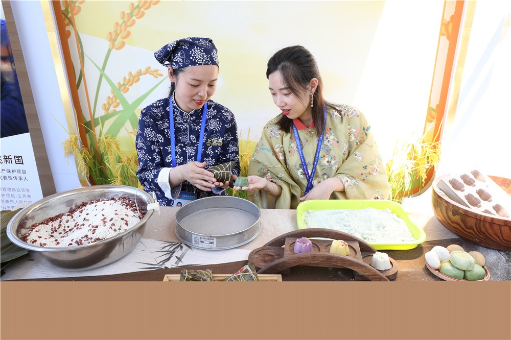 全國(guó)裹粽技藝代表作為參加者穿著各地特色服飾,裹各地特色粽子,展示全國(guó)傳統(tǒng)裹粽技藝。并邀請(qǐng)各地手藝人制作節(jié)氣特色小吃,把稻米文化、特色小吃和傳統(tǒng)節(jié)氣相融合,可觀看、可品嘗、可參與。同時(shí),以“弘揚(yáng)農(nóng)耕文化,展示黨建成果”為主題,展示紅色文化、鄉(xiāng)土文化、農(nóng)耕文化、非遺文化,設(shè)非遺體驗(yàn)區(qū),賦予豐收節(jié)歷史文化內(nèi)涵。