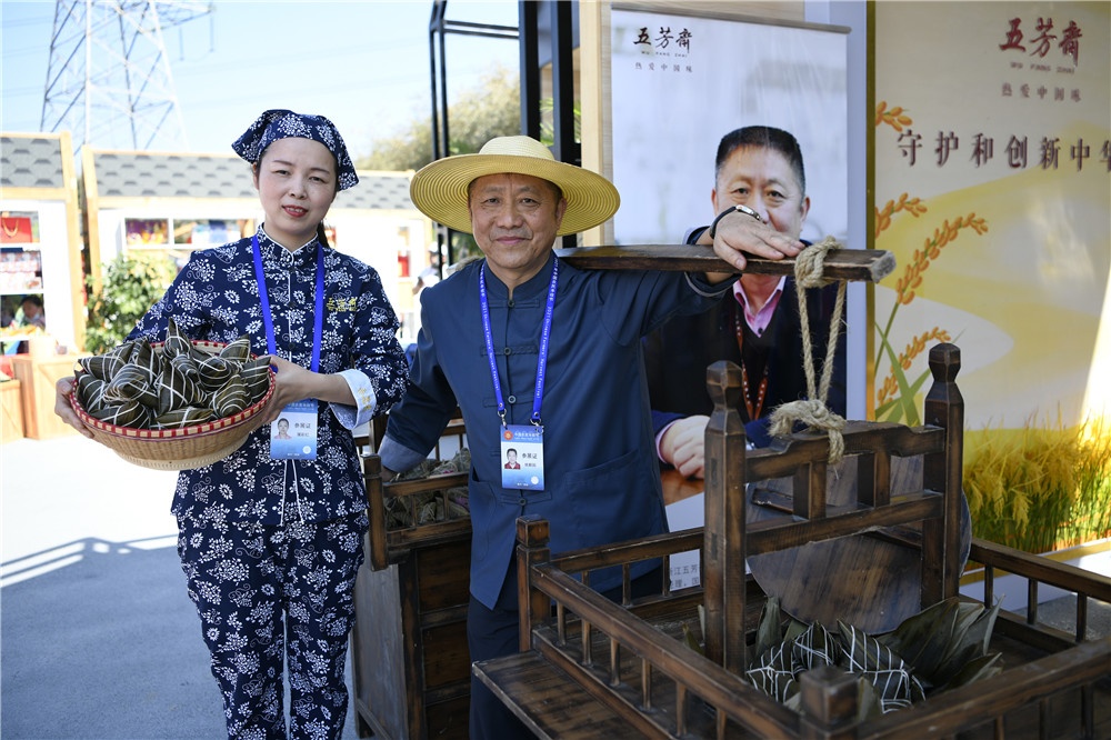 五芳齋作為長(zhǎng)江經(jīng)濟(jì)帶參展粽子企業(yè)代表向各地紛至沓來(lái)的國(guó)家領(lǐng)導(dǎo)、媒體及參訪團(tuán)展示國(guó)家級(jí)非遺-五芳齋粽子制作技藝,講述了嘉興稻米文化歷史及米制品點(diǎn)心的傳承與創(chuàng)新。