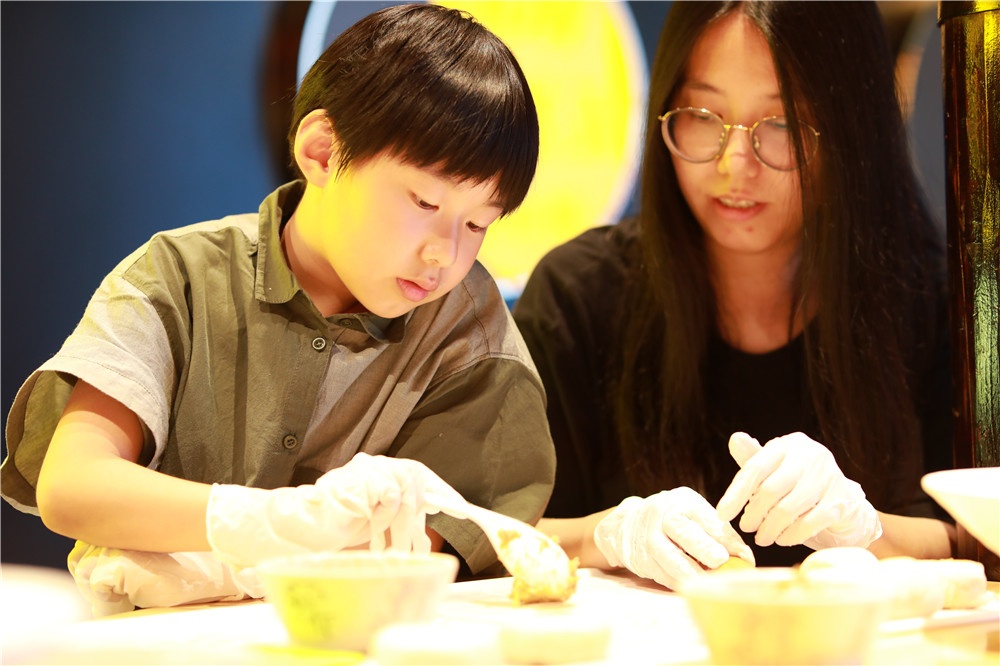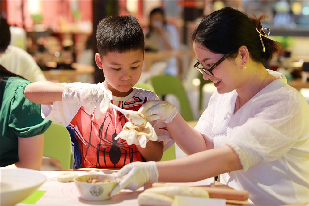 大暑節(jié)氣,宜吃鮮香軟糯之食。7月22日,五芳齋夏日品鑒會(huì)暨中華節(jié)令美食體驗(yàn)會(huì)在月河景區(qū)的嘉湖細(xì)點(diǎn)舉行,吳峻老師耐心講解鮮肉月餅制作流程,小朋友們手帶手套,認(rèn)真聆聽,并在家長(zhǎng)協(xié)助下完成月餅制作。