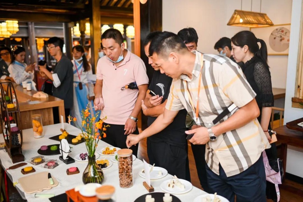 7月17日,以“賞味江南”為主題的五芳齋2020中秋新品沉浸私享會暨云直播會在嘉興·月河歷史文化景區(qū)的五芳齋嘉湖細點體驗館內(nèi)圓滿舉行?;顒赢斎?,五芳齋各合作商代表、經(jīng)銷商伙伴以及媒體嘉賓們匯聚一堂、賞味江南。