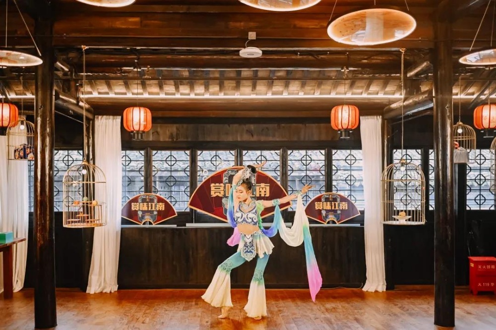 在五芳齋2020中秋新品沉浸私享會暨云直播會的現(xiàn)場,大紅燈籠春風蕩,小橋流水棲鴦,緩緩流淌的江南絲竹樂,一舞飛天攬月裙裾飄飛拉開了本次活動序幕?,F(xiàn)場不僅為全國所有伙伴直播帶來五芳齋2020中秋新品系列首秀,更是邀請到古色古香的漢服秀表演,與五芳齋2020中秋季新品完美融合,全場嘉賓沉浸在江南水鄉(xiāng)溫柔光景之中,一場無與倫比的盛宴就此展開。