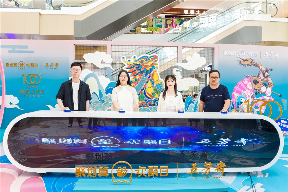 隨后,他們共同點亮五芳齋百年新紀元,并邀請現(xiàn)場觀眾參與,親切互動展現(xiàn)品牌親和力。