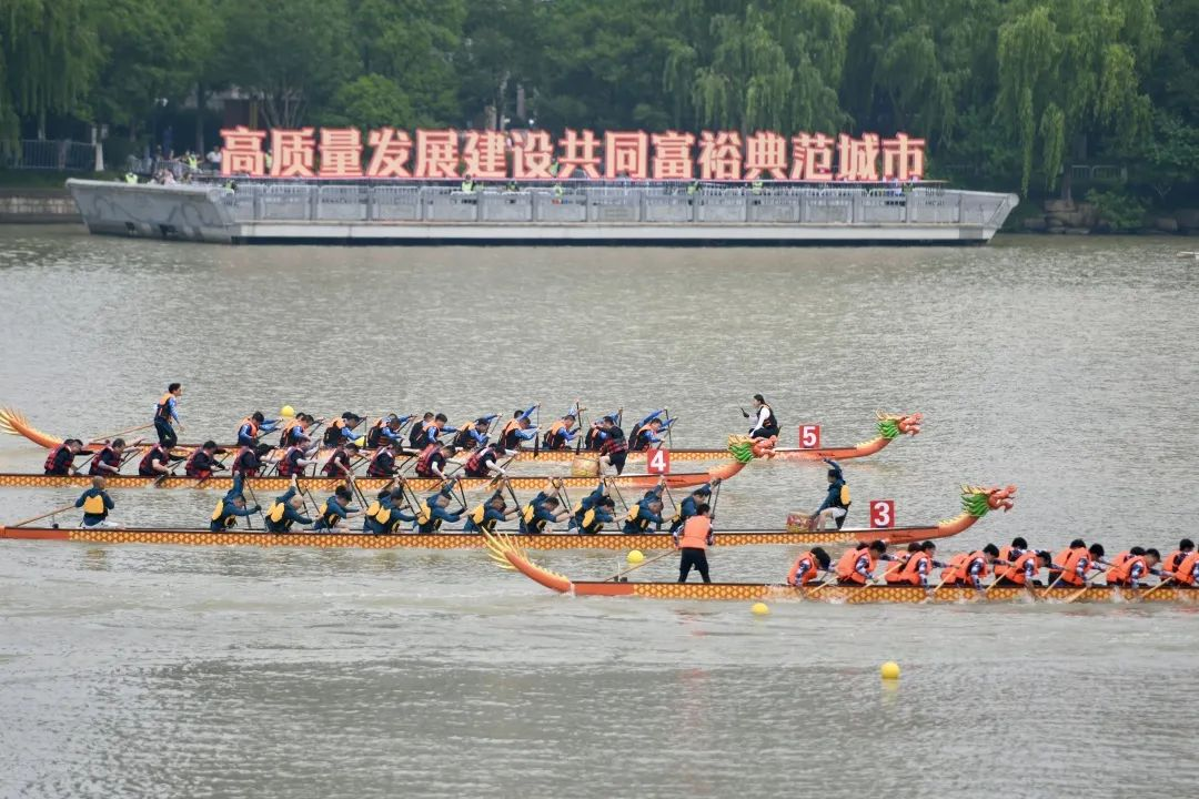 一聲令下,龍舟隊(duì)伍們?nèi)珉x弦的箭一般,群龍齊出海,浪涌如奔馬!一時(shí)間鼓聲、吆喝聲、加油聲充斥兩岸,觀賽的人群情緒都被點(diǎn)燃,現(xiàn)場洋溢著濃濃的節(jié)慶氛圍。