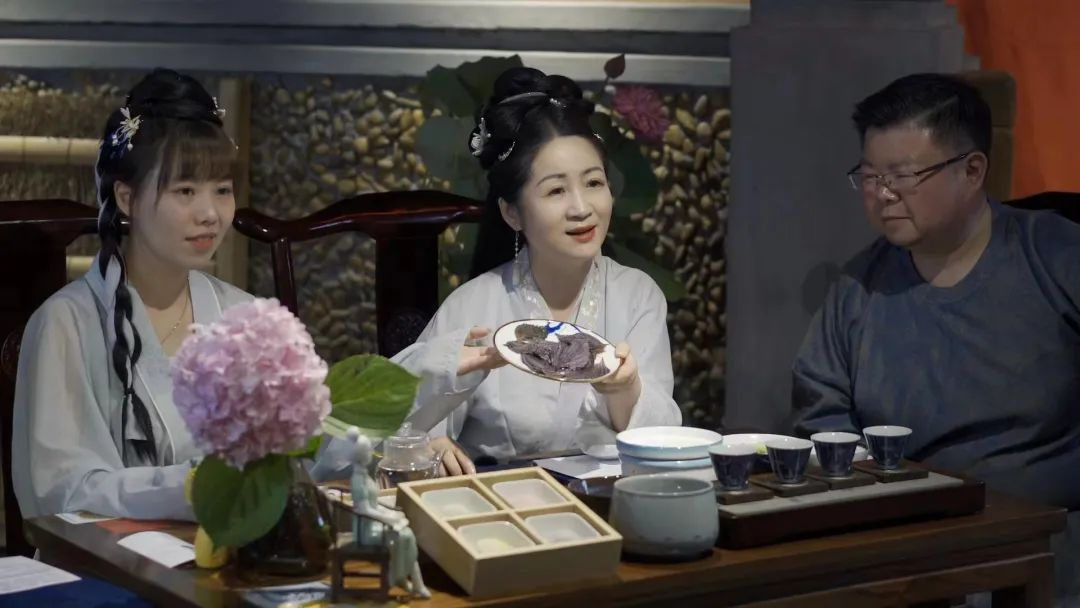現(xiàn)場,嘉賓們呷一口好茶,再品一口五芳齋精心準(zhǔn)備的中華節(jié)令點(diǎn)心“糯小果”和綠豆糕,覓得一份夏日雅閑。