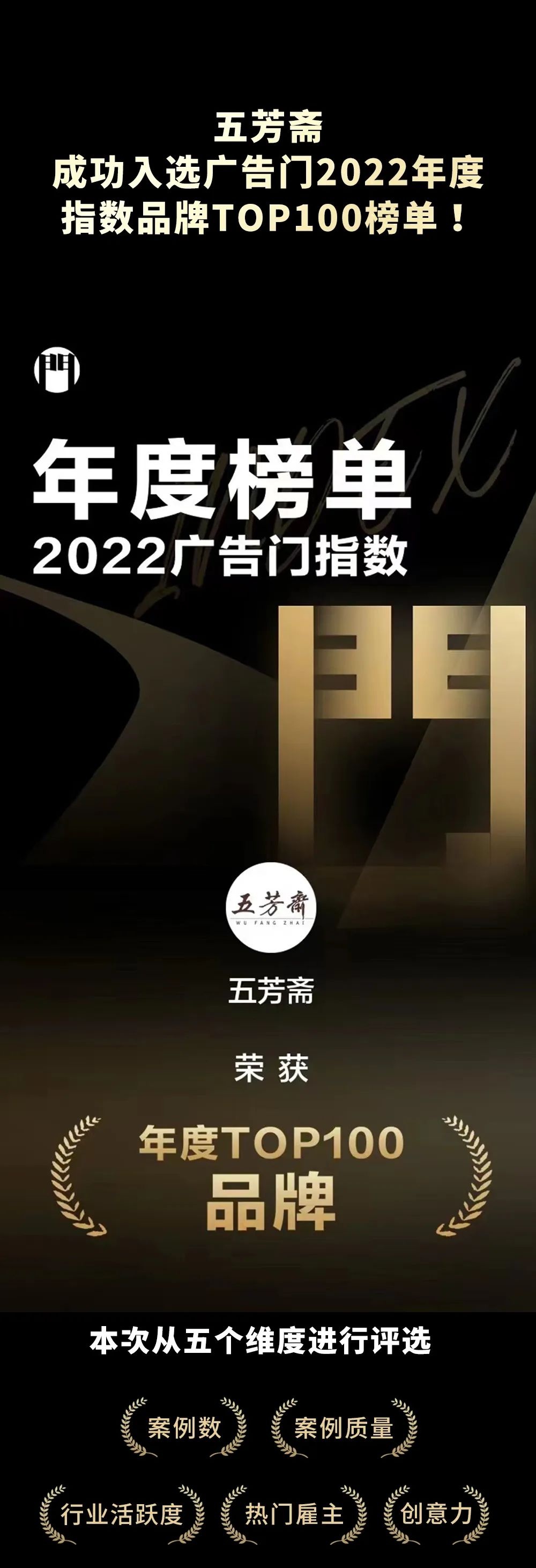 重磅!五芳齋榮登廣告門2022年度指數(shù)品牌TOP100榜單! 2023-02-06 10:17:19 浙江五芳齋實業(yè)股份有限公司 瀏覽次數(shù) 18000 上一條好雨知“食”節(jié)丨五芳齋“雨水”直播間與您共品春意! 下一條立春鬧元宵,雙城共團圓!