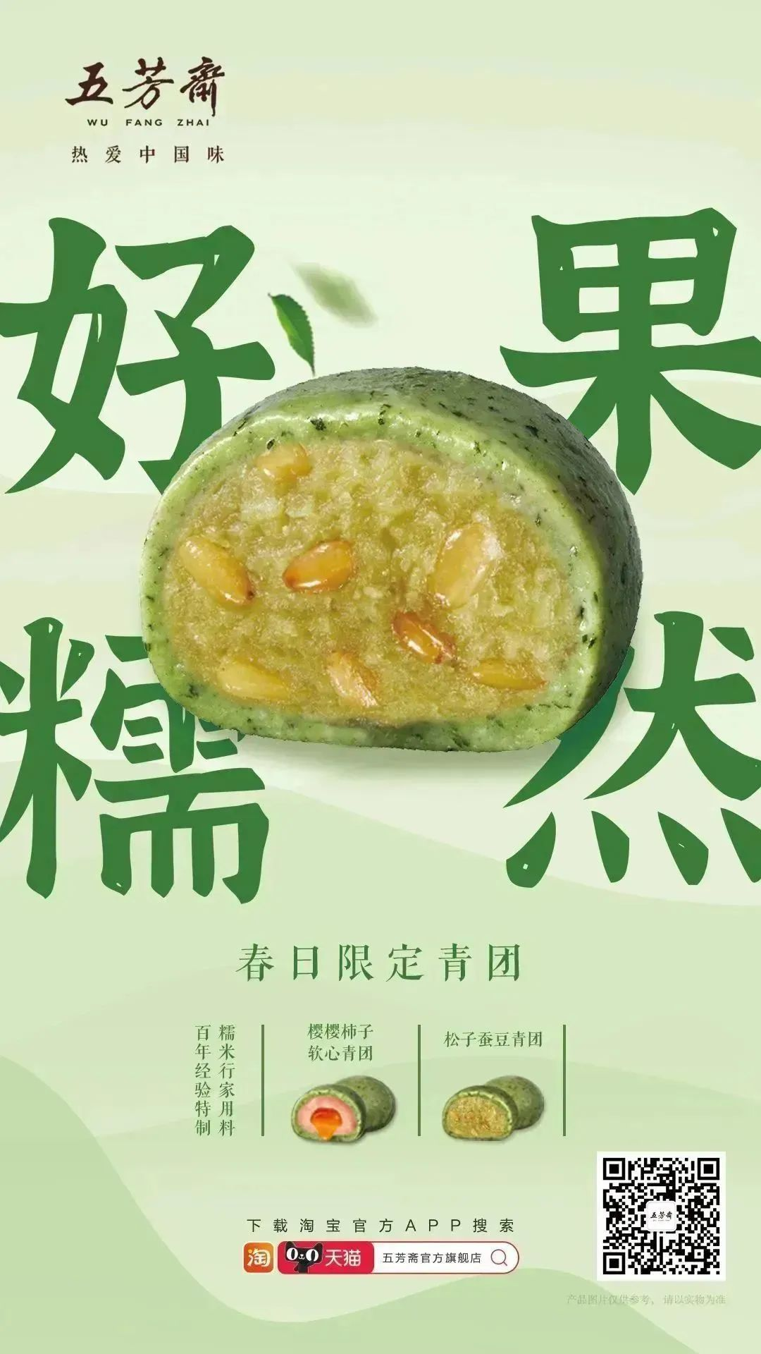 清明正值踏青之際,既有“三月三日天氣新,長安水邊多麗人”“春日游,杏花吹滿頭”的樂趣,也有“梨花風(fēng)起正清明,游子尋春半出城,日暮笙歌收拾去,萬株楊柳屬流鶯”的熱鬧。此時,來一份五芳齋季節(jié)限定青團,感受奇妙滋味。櫻櫻柿子味軟心青團糯皮加入艾草顆粒清香加倍,粉嫩櫻花風(fēng)味餡料浪漫誘惑,富平尖柿果醬軟心清甜味美。松子蠶豆軟心青團結(jié)合當(dāng)季時令蠶豆沙與松子顆粒結(jié)合,香味加倍。