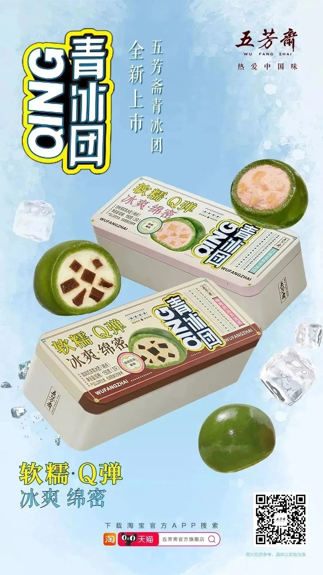 全新上市的五芳齋青冰團擁有超好吃的冰糯皮,慕斯餡心冰爽綿密??Х饶虄銮啾鶊F餡心添加 16%的咖啡奶凍,咖啡醇香濃郁,入口軟嫩冰潤,微微焦苦之后回甘,余味悠長。