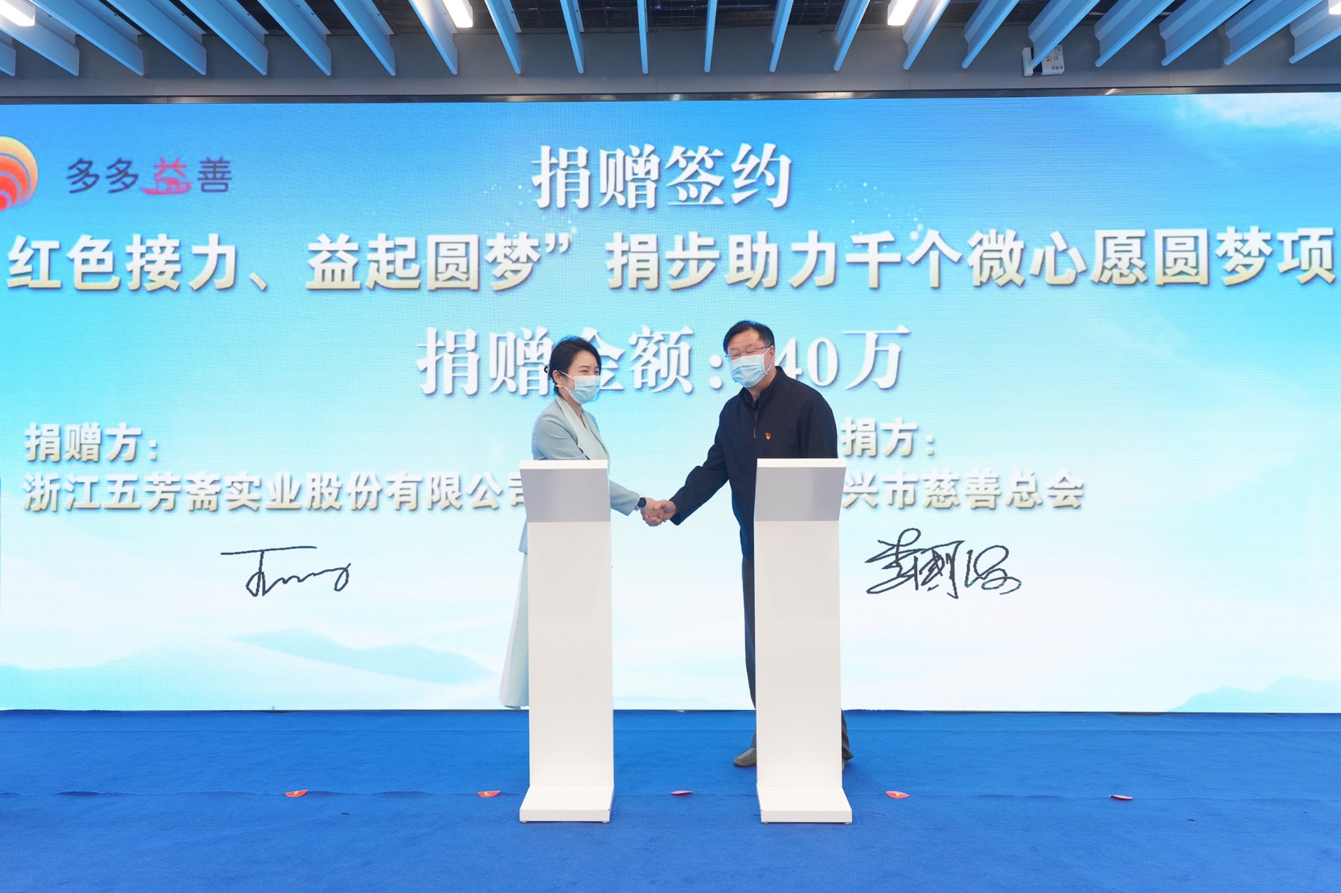 本次項目活動是由嘉興市民政局、嘉興市慈善總會主辦,旨在打造“人人可慈善,人人皆慈善”良好氛圍。五芳齋作為本次活動的愛心企業(yè),捐贈40萬元,冠名承接起“紅色接力、益起圓夢”--慈善助力千個困難家庭學(xué)生微心愿圓夢項目。